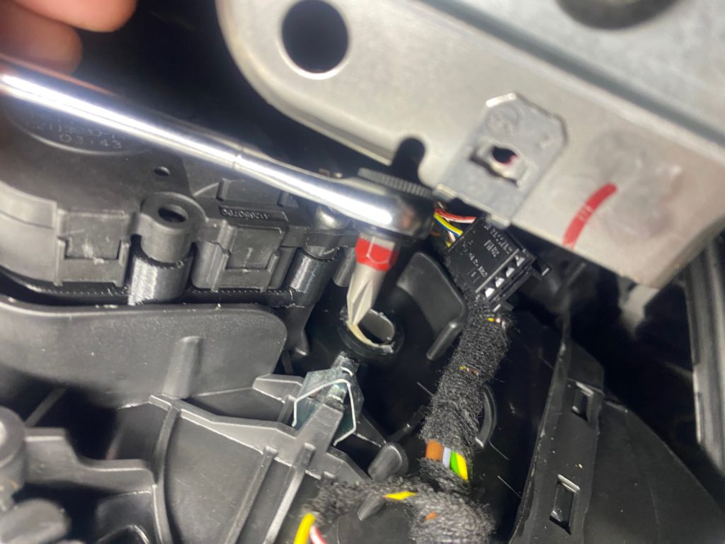 フラップモーターの固定ボルト(T15)を2箇所緩めてフラップモーター(以下モーター)を引き出してください。